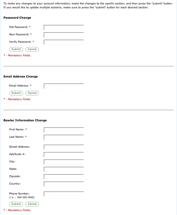 View, Edit, Add, or Delete bowling balls that you are currently using and information about each one. This list of bowling balls and the detail that you gather will help you and your Pro Shop make wiser decisions on bowling balls you will purchase in the future. If you would like to print a copy of your Arsenal, there is a link in this section that will give you a printer friendly version.